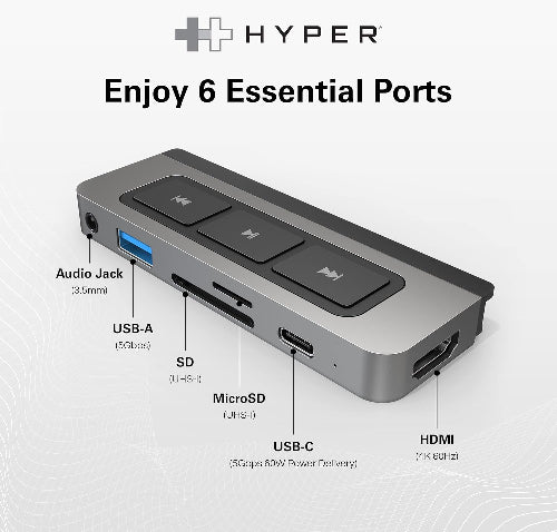 - Transformez votre iPad en bureau – Le hub multimédia HyperDrive USB-C 6 en 1 pour iPad est le hub USB de bureau ultime. Transformez votre iPad USB-C (10e génération), iPad Pro, Air ou mini en un espace de travail puissant avec un port HDMI, un port USB-C 5 Gbps 60 W, des emplacements MicroSD/SD, un port USB-A 5 Gbit/s et une prise audio de 3,5 mm.